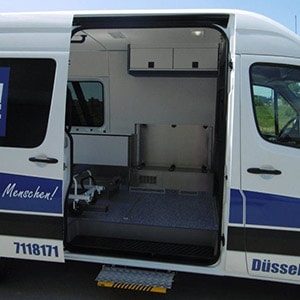 Mit unseren Fahrzeugen BTW befördern wir Patienten, die in ihren Bewegungsabläufen mittel- bis stark eingeschränkt oder auf einen Rollstuhl angewiesen sind. Die Fahrzeuge sind mit hydraulischer bzw. elektrischer Hebebühne ausgestattet.